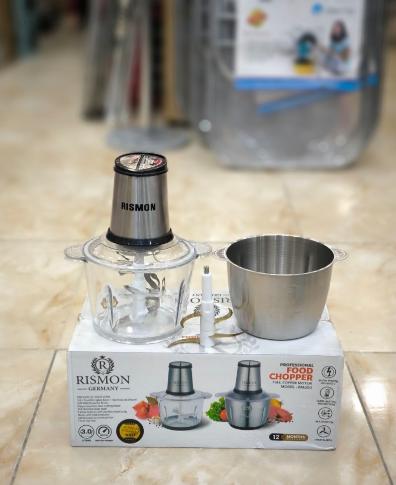 قدرت موتور600وات سیم پیچ تمام مسحجم ظرف۳لیتر هر کدام (2کاسه استیل و شیشه )جنس تیغهاستیل ضد زنگگارانتی12ماهه بسیار معتبر شرکت ریسمونتنظیمات سرعت۲سرعته